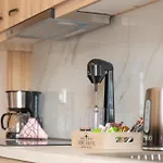 A felszerelt konyhasarokban kenyérpirító és sütő biztosított.